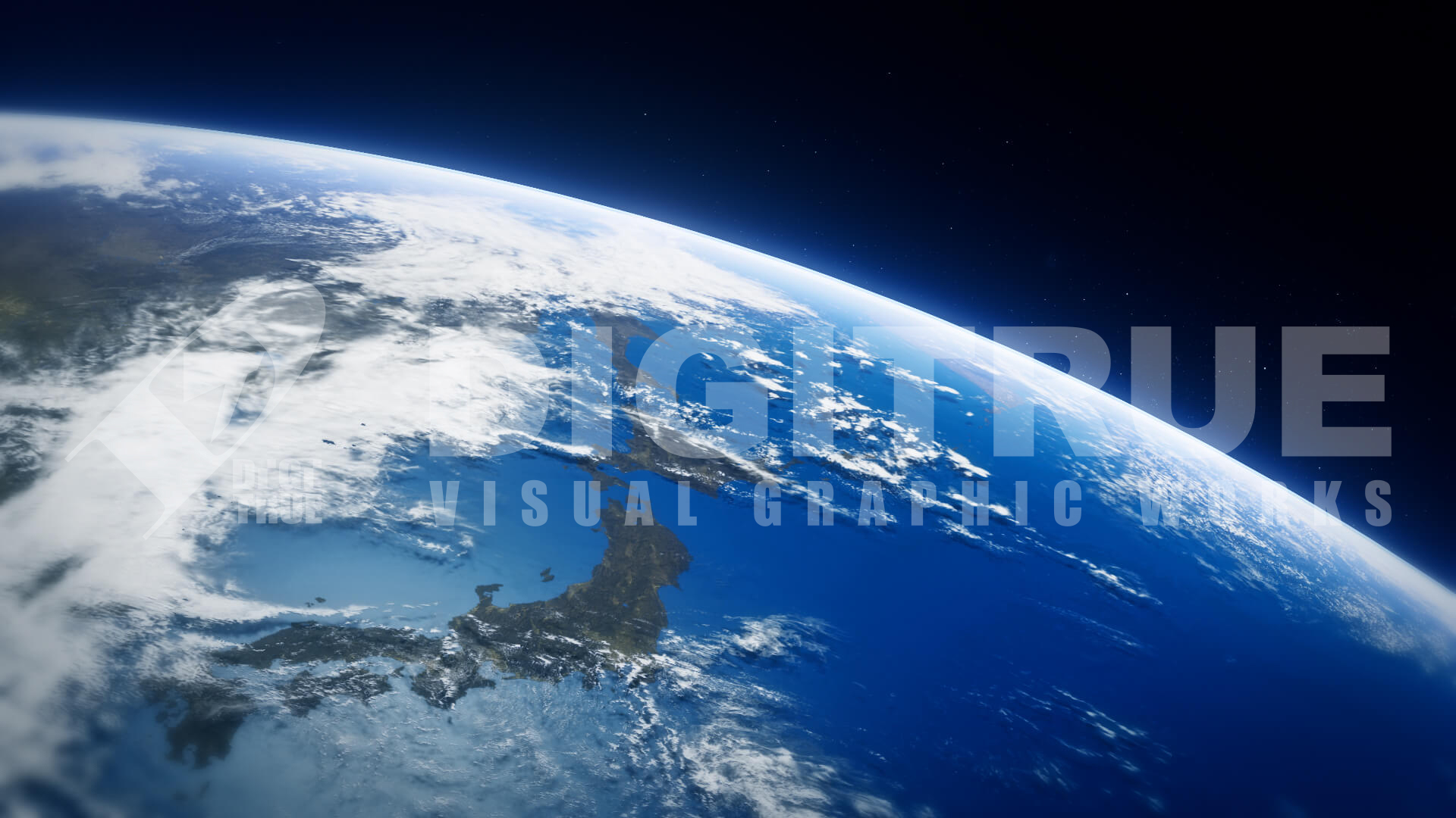 冒頭の地球~日本上空のシーンは3DCGアニメーションで制作。青い星(地球)から「水」を連想させるイメージでエフェクト効果を作成。